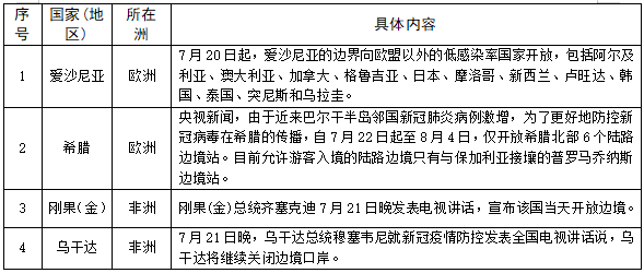 宣布進入緊急狀態(tài)等情況的國家(地區(qū))——截至7月22日,共有161個國家(地區(qū))采取了相關(guān)措施。本期更新17個國家(地區(qū)),其中馬來西亞、尼泊爾、伊拉克、阿根廷、剛果(金)、烏干達放松部分管控措施。與此同時,多國延長緊急狀態(tài)并加強管控措施。具體情況如下: |