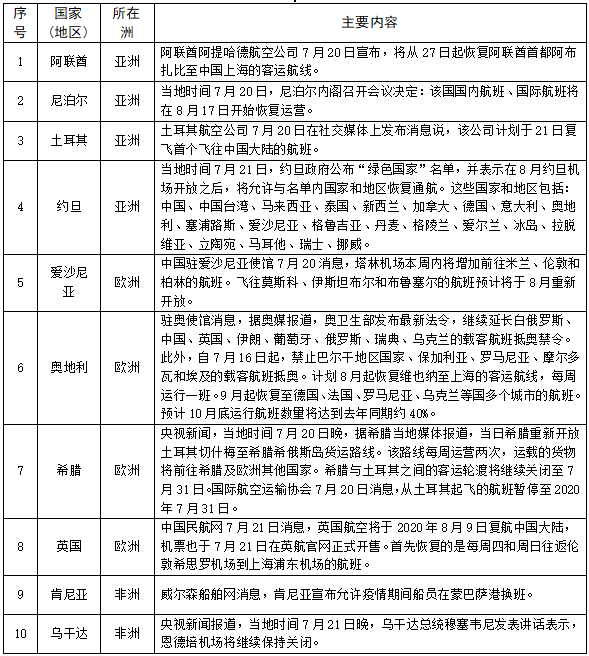 根據(jù)國家移民局官網(wǎng)、中國駐相關(guān)國家大使館及經(jīng)濟商務(wù)參贊處官網(wǎng)、WTO官網(wǎng)、威爾森集團全球港口應(yīng)對新冠疫情限制性措施查詢平臺、國際航空運輸協(xié)會、境內(nèi)外相關(guān)媒體網(wǎng)站發(fā)布的信息及中國貿(mào)促會駐外代表處和部分企業(yè)反饋的情況,貿(mào)促會在有關(guān)國家(地區(qū))因新冠肺炎疫情采取的相關(guān)措施提示(四十)基礎(chǔ)上對相關(guān)信息進行了更新,供企業(yè)參考。據(jù)不完全統(tǒng)計,截至2020年7月22日,共有194個國家(地區(qū))因疫情影響采取相關(guān)措施,包括中國香港、澳門和臺灣地區(qū)。 對貨物貿(mào)易(除醫(yī)療物資外)采取措施的情況——截至7月22日,共有56個國家(地區(qū))采取相關(guān)措施,本期更新1個國家——伊朗。據(jù)伊通社7月21日報道,伊朗總統(tǒng)魯哈尼周一在關(guān)于消除壁壘和促進出口的會議上表示,他的政府的政策是支持出口以幫助加強國內(nèi)生產(chǎn),必須增加對鄰國的出口,并使出口貨幣回到國家財政周期。在談到單一產(chǎn)品出口對國家經(jīng)濟的危害時,魯哈尼指出,努力使出口產(chǎn)品多樣化是振興國民經(jīng)濟,促進人民繁榮的有效措施。“最近幾個月,在冠狀病毒爆發(fā)后,我們與鄰國的邊境貿(mào)易和進出口被關(guān)閉了,幸運的是,我們根據(jù)衛(wèi)生協(xié)議重新開放邊境,與鄰國的邊境貿(mào)易已經(jīng)恢復(fù),必須抓住這次增加出口的機會”。 另據(jù)海關(guān)總署消息,2020年7月9日歐盟發(fā)布法規(guī),明確以經(jīng)特定處理家禽鮮肉為原料的加工制品進口條件:鮮肉原產(chǎn)自滿足“通用動物衛(wèi)生要求”的歐盟成員國;或者鮮肉原產(chǎn)自條例中所列的第三方國家,且其養(yǎng)殖或捕殺10公里(包括鄰國)內(nèi)至少30天內(nèi)未爆發(fā)高致病性禽流感或新城疫。同時,歐盟還修訂“自第三方國家進口修訂肉制品和經(jīng)處理的胃、膀胱和腸等肉類產(chǎn)品衛(wèi)生證書”模板。對于2020年10月10日之前簽發(fā)的修訂前證書可繼續(xù)過渡使用至2020年11月10日。 對醫(yī)療物資貿(mào)易采取措施的情況——截至7月22日,共有82個國家(地區(qū))采取了相關(guān)措施,本期無更新。 對船舶/航班/列車采取措施的情況——截至7月22日,共有153個國家(地區(qū))采取了相關(guān)措施。本期更新10個國家(地區(qū)),其中阿聯(lián)酋、土耳其、約旦、尼泊爾、愛沙尼亞、英國恢復(fù)部分航班;希臘重新開放土耳其切什梅至希臘希俄斯島貨運路線;肯尼亞允許船員在蒙巴薩港換班。具體如下: 對邊境口岸采取措施的情況——截至7月22日,有106個國家(地區(qū))采取了相關(guān)措施。本期更新4個國家,其中愛沙尼亞向歐盟以外的低感染率國家開放邊界;剛果(金)7月21日開放邊境。具體如下: 對人員入境采取措施的情況——截至7月22日,共有179個國家(地區(qū))采取了相關(guān)措施。本期更新8個國家(地區(qū)),其中泰國對4類新的外國人群體開放入境;愛沙尼亞允許歐盟以外的低感染率國家居民入境,同時從部分歐盟國家入境愛沙尼亞的人員無需自我隔離;赤道幾內(nèi)亞允許外國投資者、在封鎖期間回國的外國商務(wù)人員及其他具有相關(guān)有效簽證人員入境。具體如下: