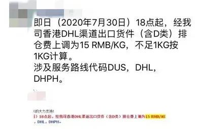 現在疫情還在繼續,UPS的部分航線運力依舊不足,航班面臨緊缺,有些物流公司已經開始開始暫停收貨,某物流公司工作人員也表示:“我們大陸南航UPS快線飛JFK美東航班已經緊缺,此渠道暫停收貨了。”由于香港DHL排倉嚴重,有些物流公司開始就宣布香港DHL渠道出口貨件排倉價格上調。8月2日起,空派價格每公斤上漲10元。香港DHL敏感貨渠道排倉費每公斤上調12元。