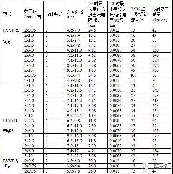 常見BVVB型、BLVVB型、RVVB型電線載流量